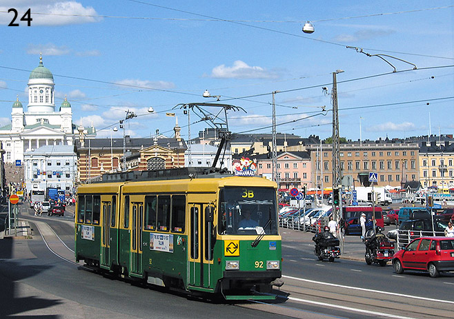 Helsingfors: Ledvagn 92 från år 1985 vid Södra kajen på linje 3B, 7/06.